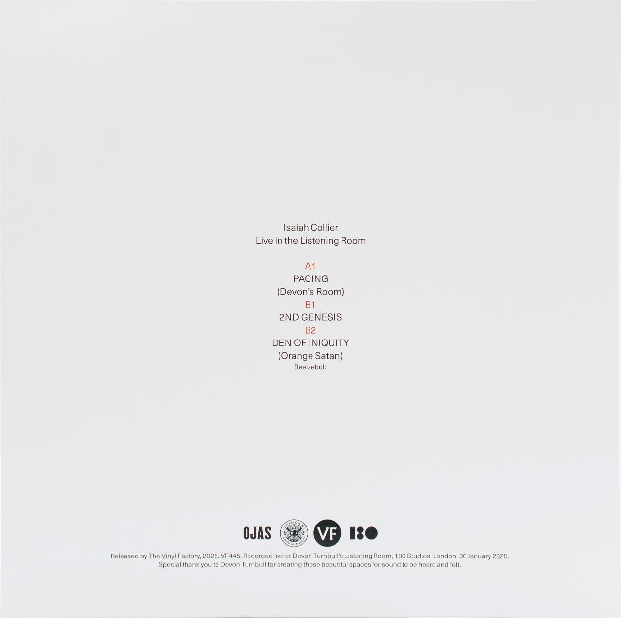 - Side A: "Pacing (Devon’s Room)" — a fiery opener showcasing Collier’s commanding intensity and Regis’ relentless dynamism.