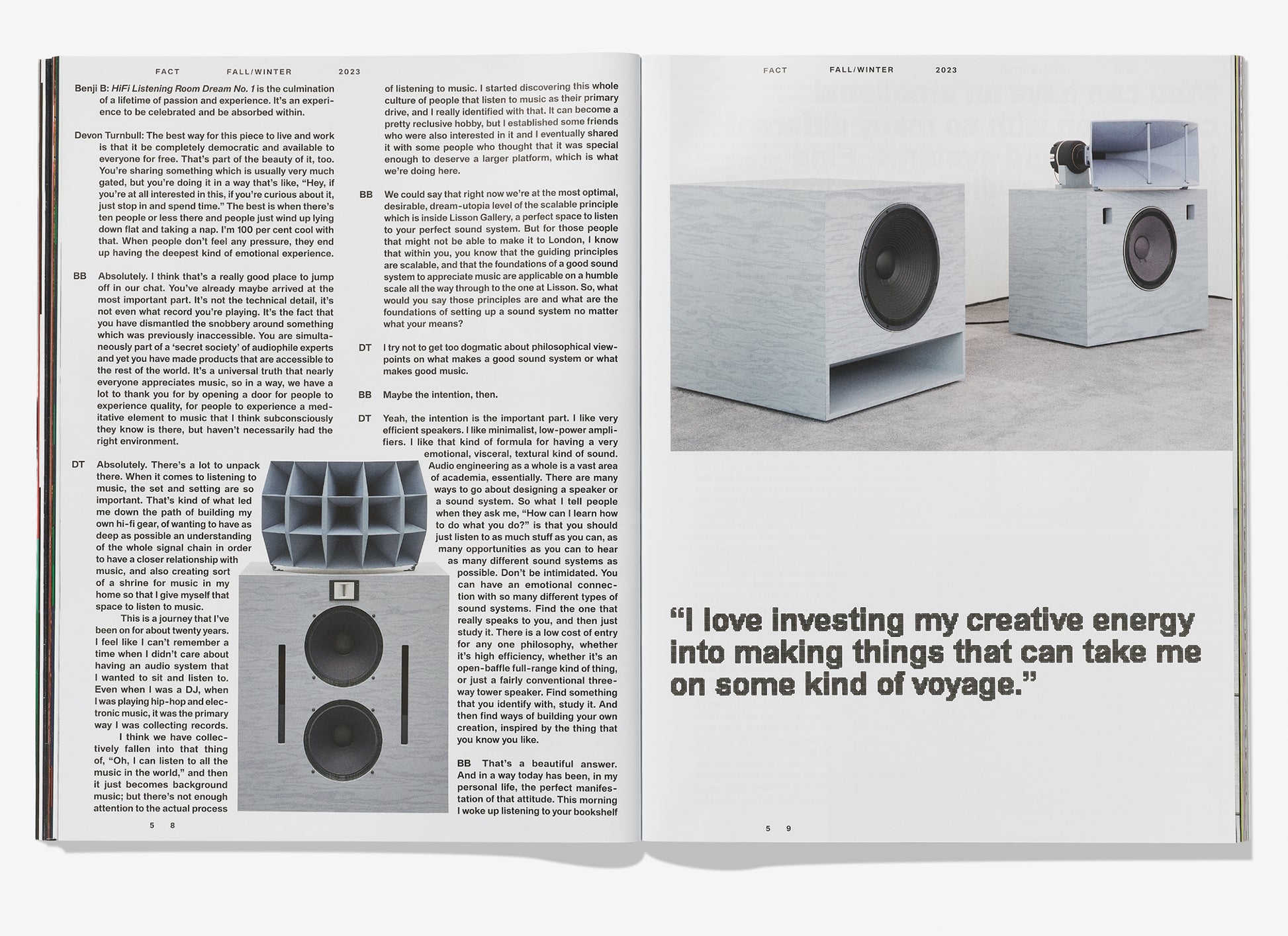 This issue of Fact shines a spotlight on artists who are creating remarkable experiences where art and music intersect: Devon Turnbull, whose serene Listening Room will find a permanent home at 180 Studios in 2023; BAMBII, the breakthrough DJ/producer inspired by her Jamaican roots shapes not only how we listen to music, but how we gather and dance; Ibby Njoya, a 180 Studios resident, whose mesmerising, hyper-colourful digital paintings were produced exclusively for this issue; McKenzie Wark, whose written homage to the transcendental power of club music is both deeply personal and universally powerful; and Evian Christ and 333EYMBW, who are pushing electronic art in new directions, evident in both their music and their creative collaborations for Fact 06.